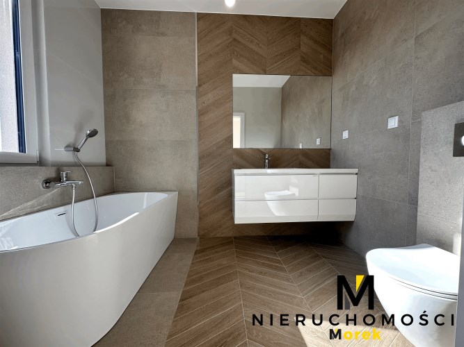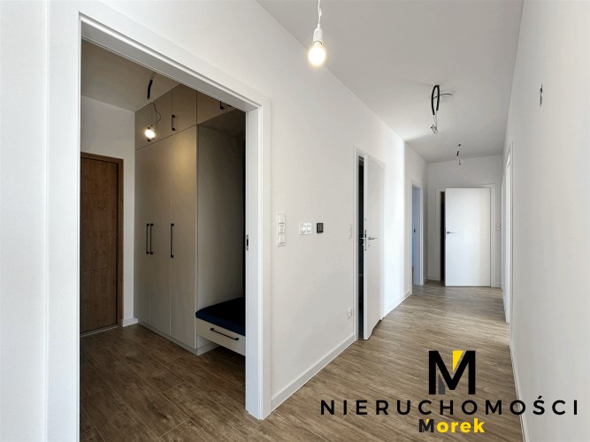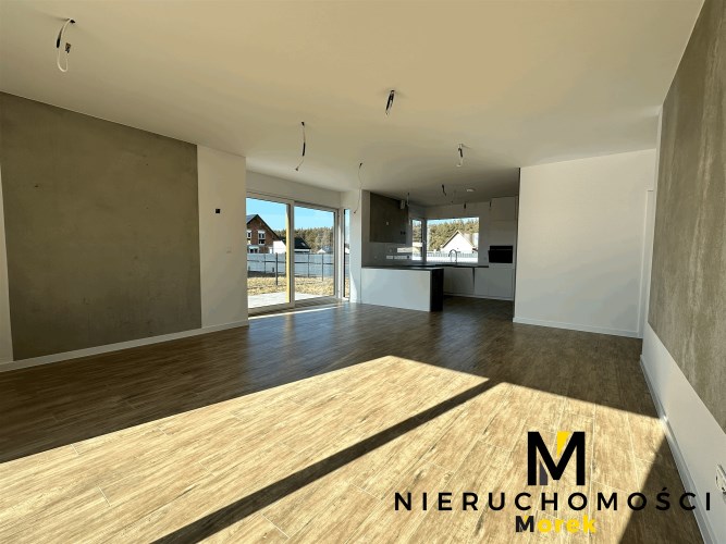 3 sypialnie, salon z aneksem, przedsionek garażu z zabudową pod pralnię.