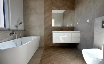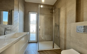 2 łazienki, jedna z wanną, druga z prysznicem, obie z oknami.