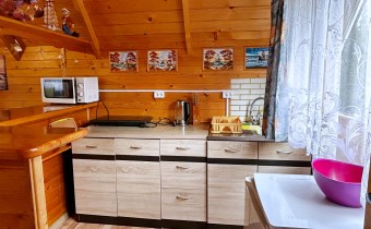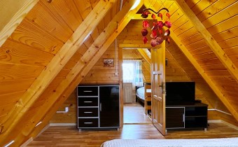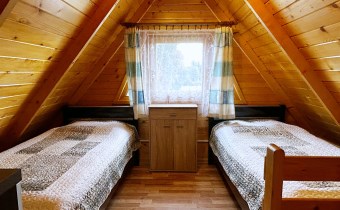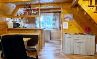Dwupoziomowe domki letniskowe w dobrym stanie z przyjemnym i komfortowym wnętrzem przeznaczone są na wynajem dla 5,6 i 7 osób.