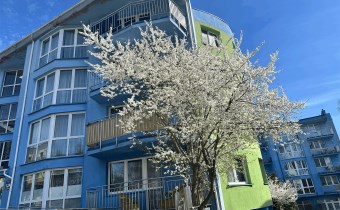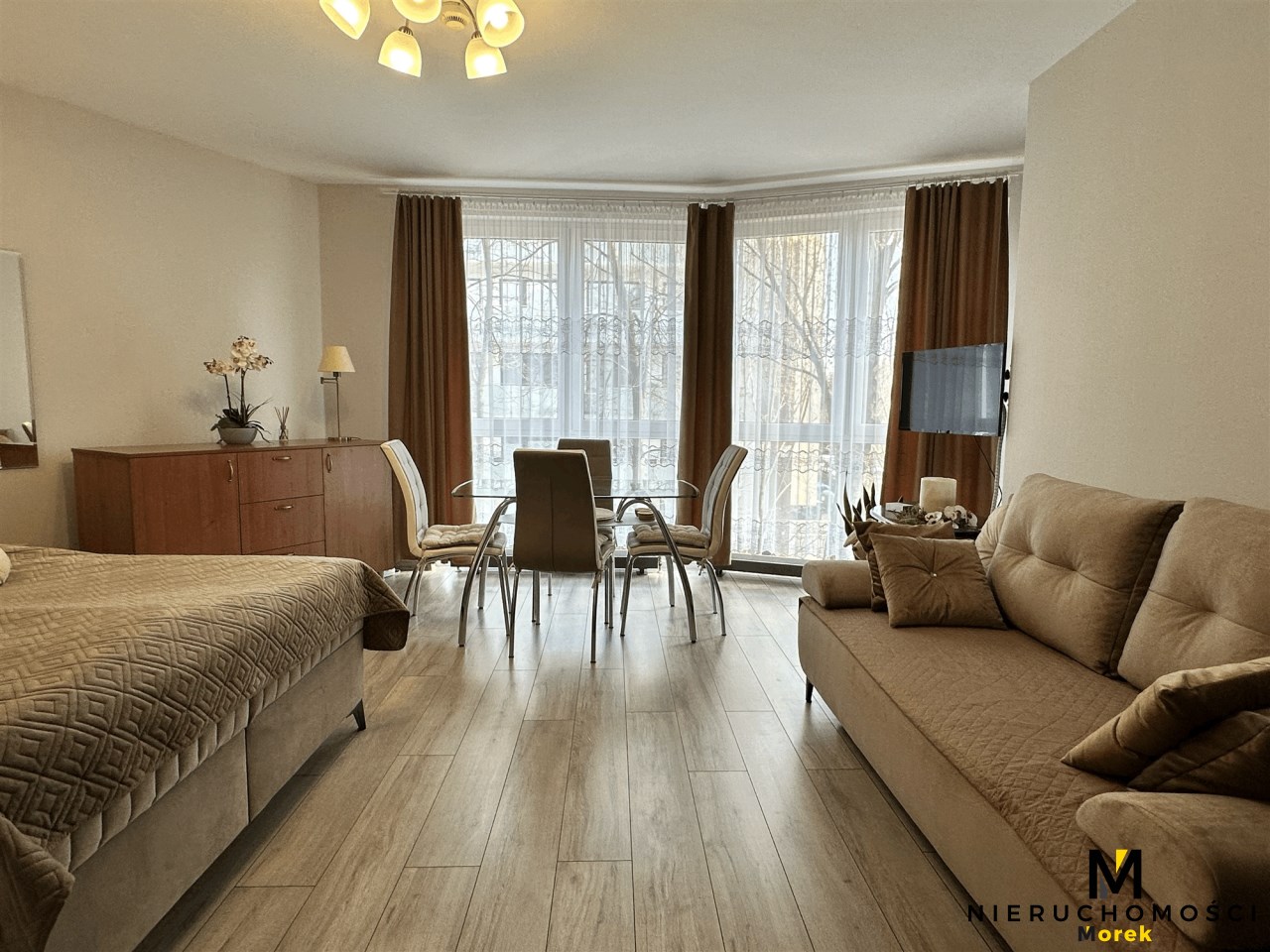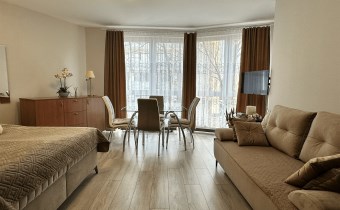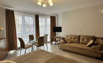 Jednopokojowy apartament, z łazienką i aneksem kuchennym.Słoneczny od rana, z dużymi przeszkleniami od wschodniej strony w sercu dzielnicy uzdrowiskowej Kołobrzegu,