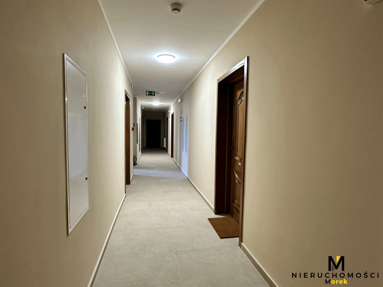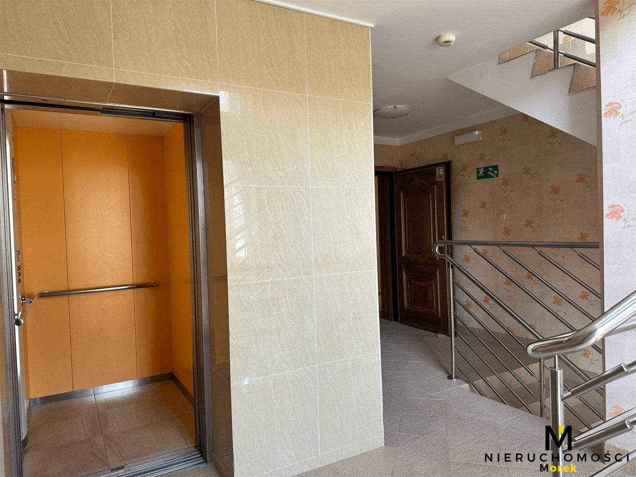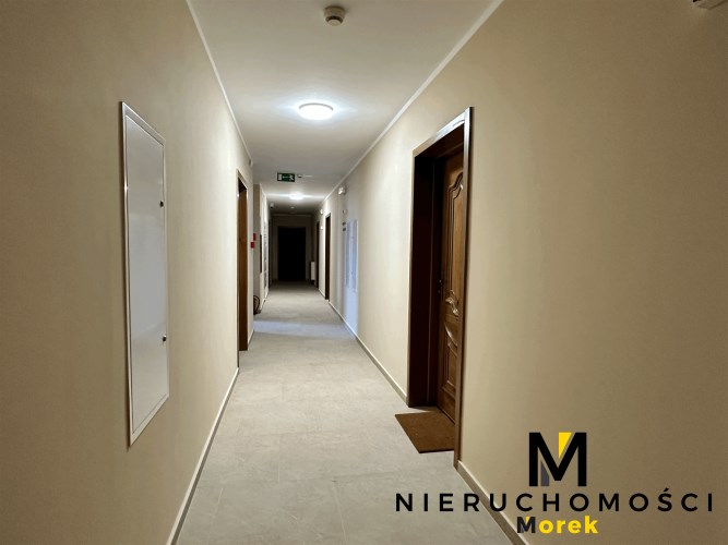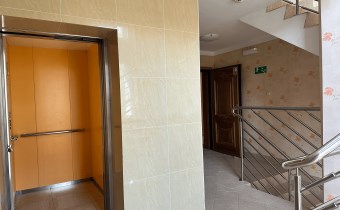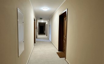Części wspólne po remontach: odnowione tynki na korytarzach, budynek z windą, bez barier architektonicznych.