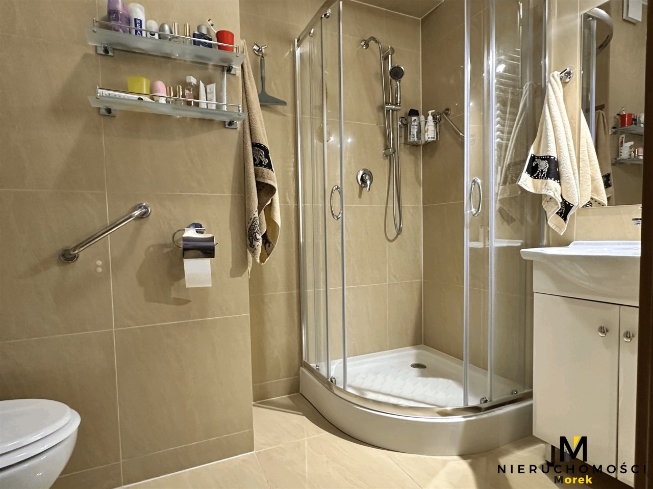 Łazienka z natryskiem i toaletą, oraz umywalką,