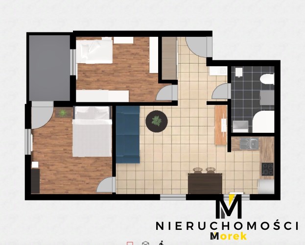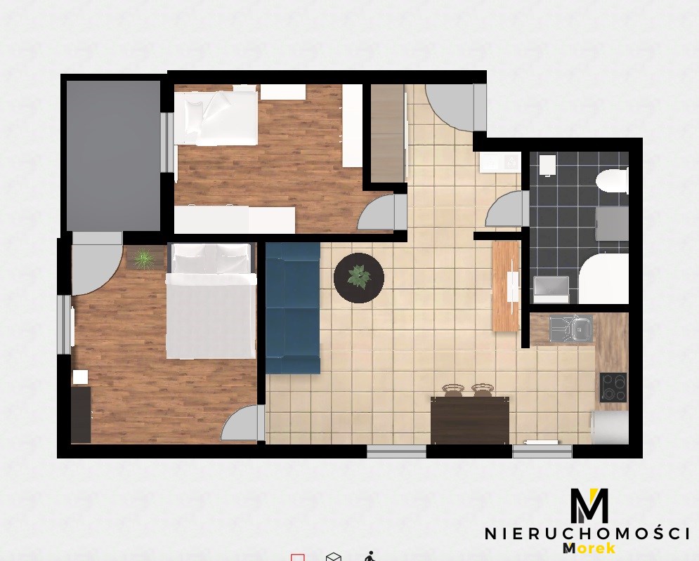 Nieruchomość składa się z przestronnego salonu z aneksem kuchennym, sypialni, łazienki z toaletą oraz przedpokoju - układ jest funkcjonalny i wygodny zarówno do stałego zamieszkania, jak i pod wynajem krótkoterminowy.