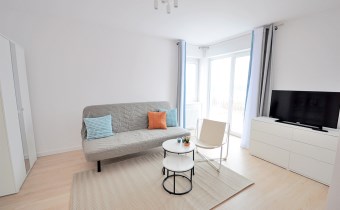 Słoneczny apartament jednopokojowy do wynajęcia na minimum rok.Lokal po remoncie z dużym balkonem i widokiem na kołobrzeski port.